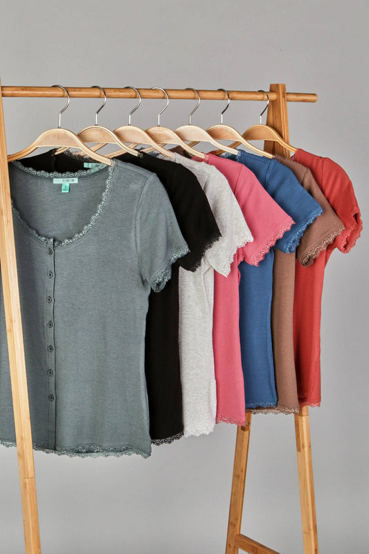 Solid Rib Button Top