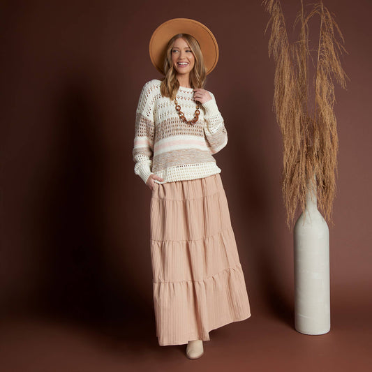 Opal Color Block Drop Shoulder Crochet Sweater