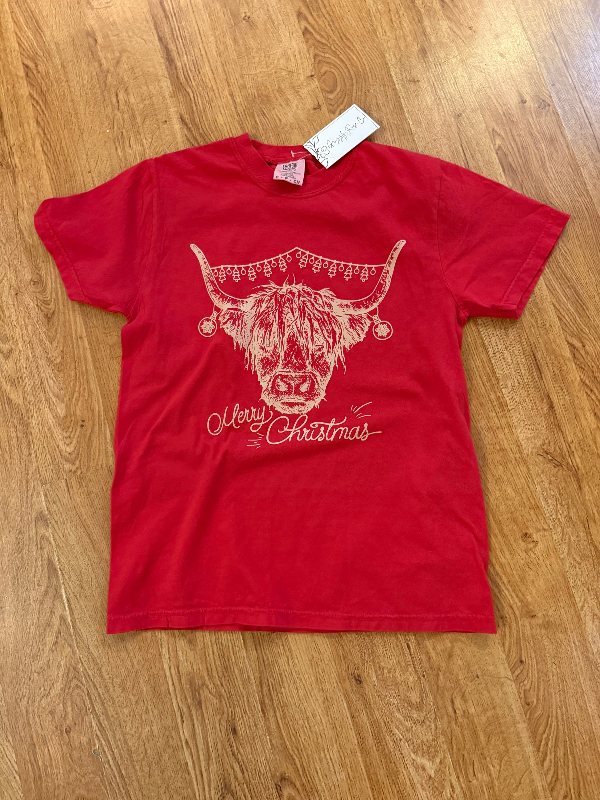 Merry Christmas Highland Cow Comfort Colors Graphic Tee