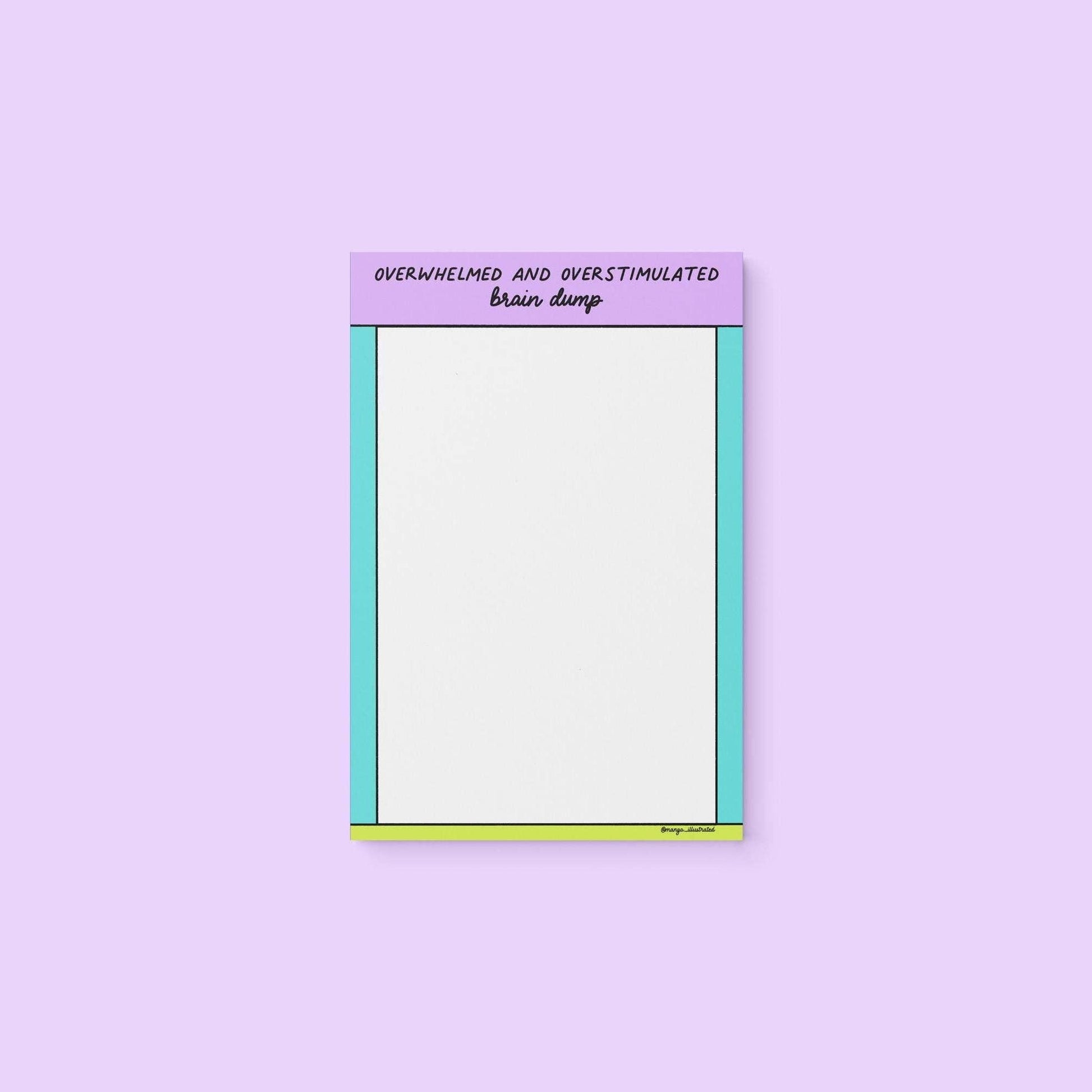 If you're overwhelmed and overstimulated like me, sometimes you just need to clear out your brain so you can think again. Enter our Overwhelmed and Overstimulated Brain Dump notepad. Perfect for getting all the thoughts out of your head so you can remember them and maybe even think clearly again.