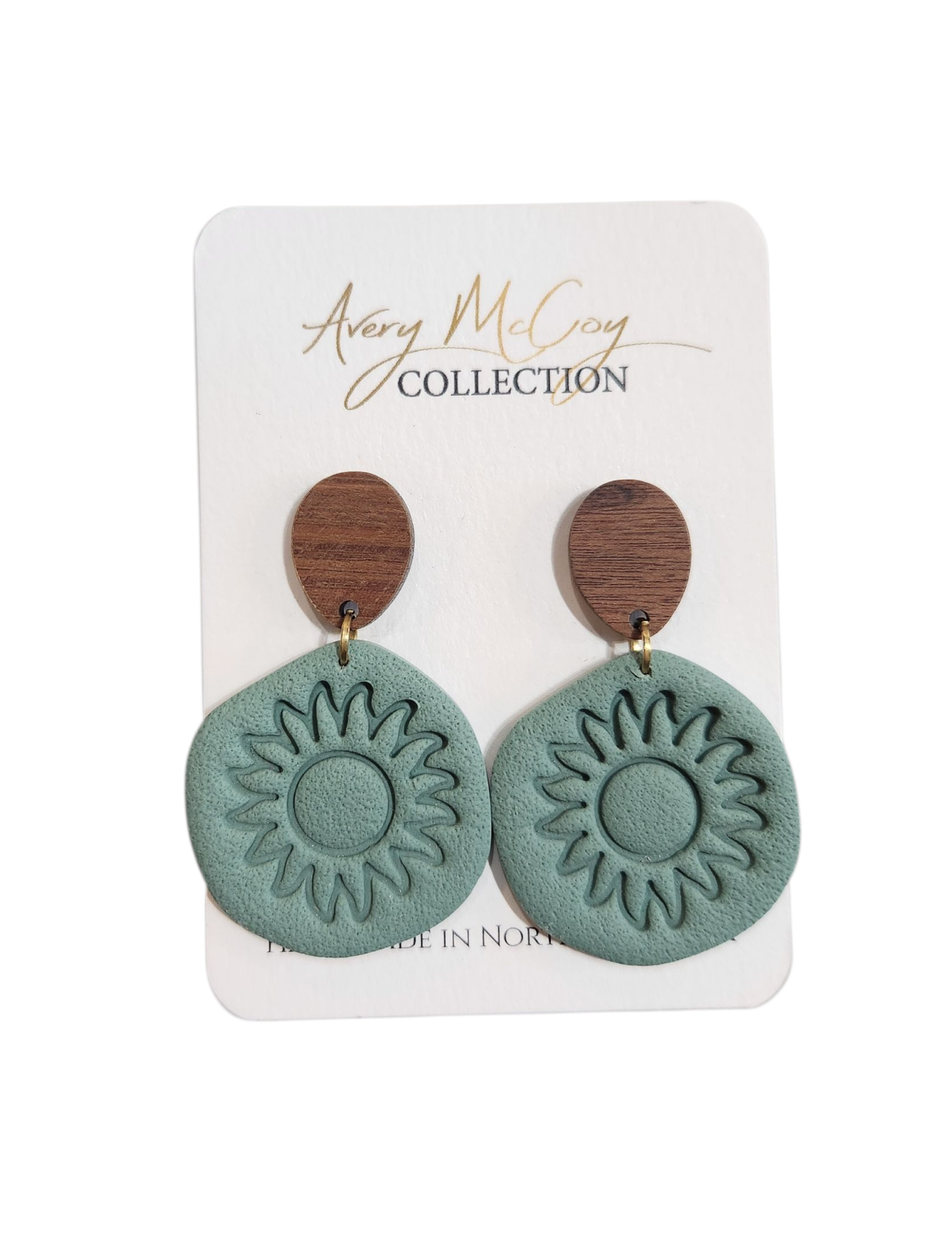 All earrings are handmade by Bri in North Liberty, IA. They are all created with polymer clay, which makes them incredibly lightweight. They are also hypoallergenic and perfect for sensitive ears.